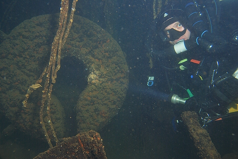Image by Andy Colls - Taken August 2015 deeep on the wreck of the SMS Kronprinz Wilhelm, part of the German Fleet scuttled at Scapa Flow. The wreck is upside down and the picture is of Noel Talbot in one of the gun turrets. Sadly Noel died in April of Covid19